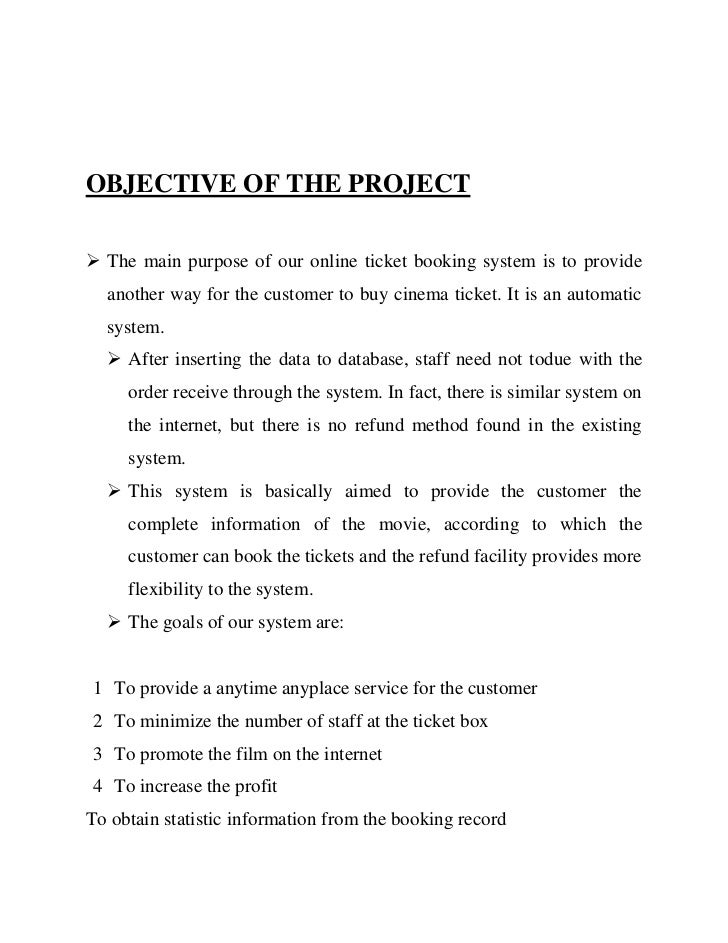 Online Bus/Railway/Air Ticket Reservation System: This Online project is aimed at automation of a Travel Ticket Booking System i.e-Ticket Reservation System in Asp.Net. Objective of the project is to develop customized website for Travel Agencies so customer can book their tickete online through home. AN ONLINE CINEMA BOOKING/TICKET PURCHASING SYSTEM. A CASE STUDY OF GLOBAL CINEMA A Project Work Submitted in Partial Fulfillment of the Requirement For BSc. Information Technology.
